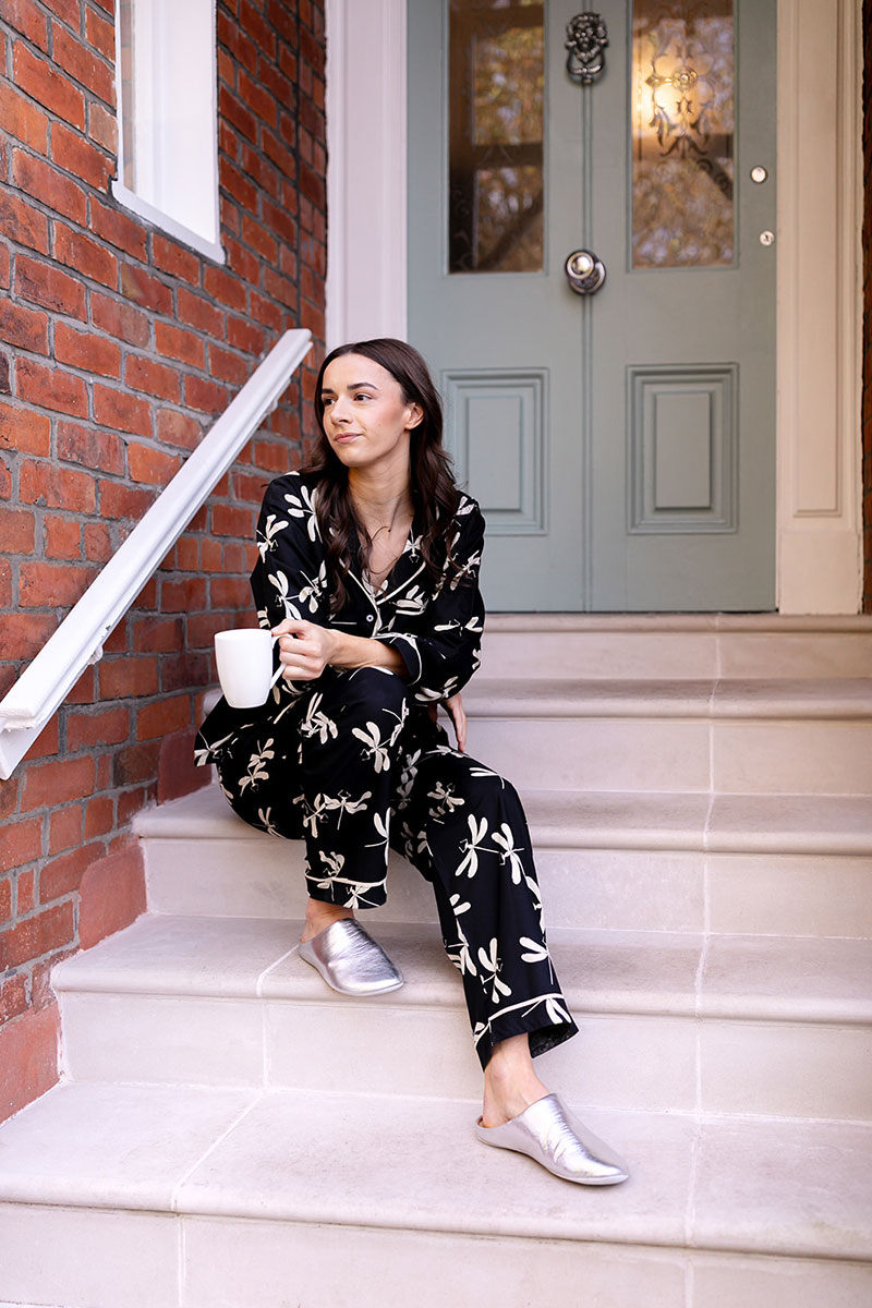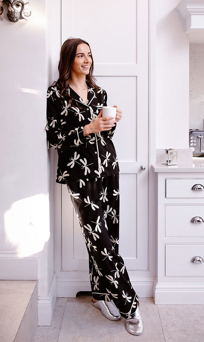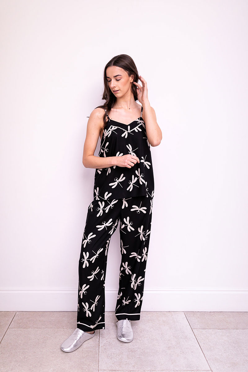 Black Dragonfly Print Pyjama Trousers