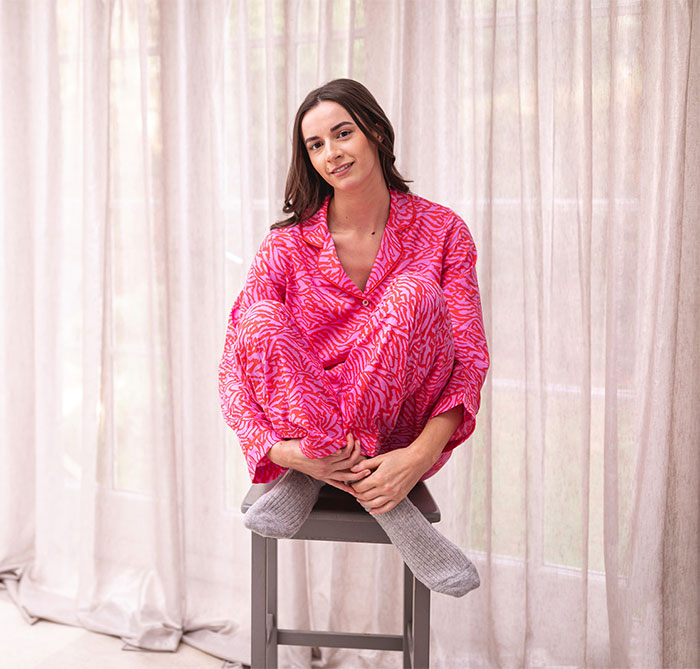 Look simply stunning in our gorgeous printed pyjama long sleeved shirt, trimmed with contrasting binding to the collar,cuffs and pocket. created in 100% modal woven fabric that is soft to the touch and is eco-friendly. Modal is also extremely breathable due to the micropores within the fibres which absorb 50% more water than cotton ensuring a perfect nights sleep. Finished with our Lazy Loft buttons which have been made from recycled plastic. Cordinates perfectly with our printed trousers or shorts.